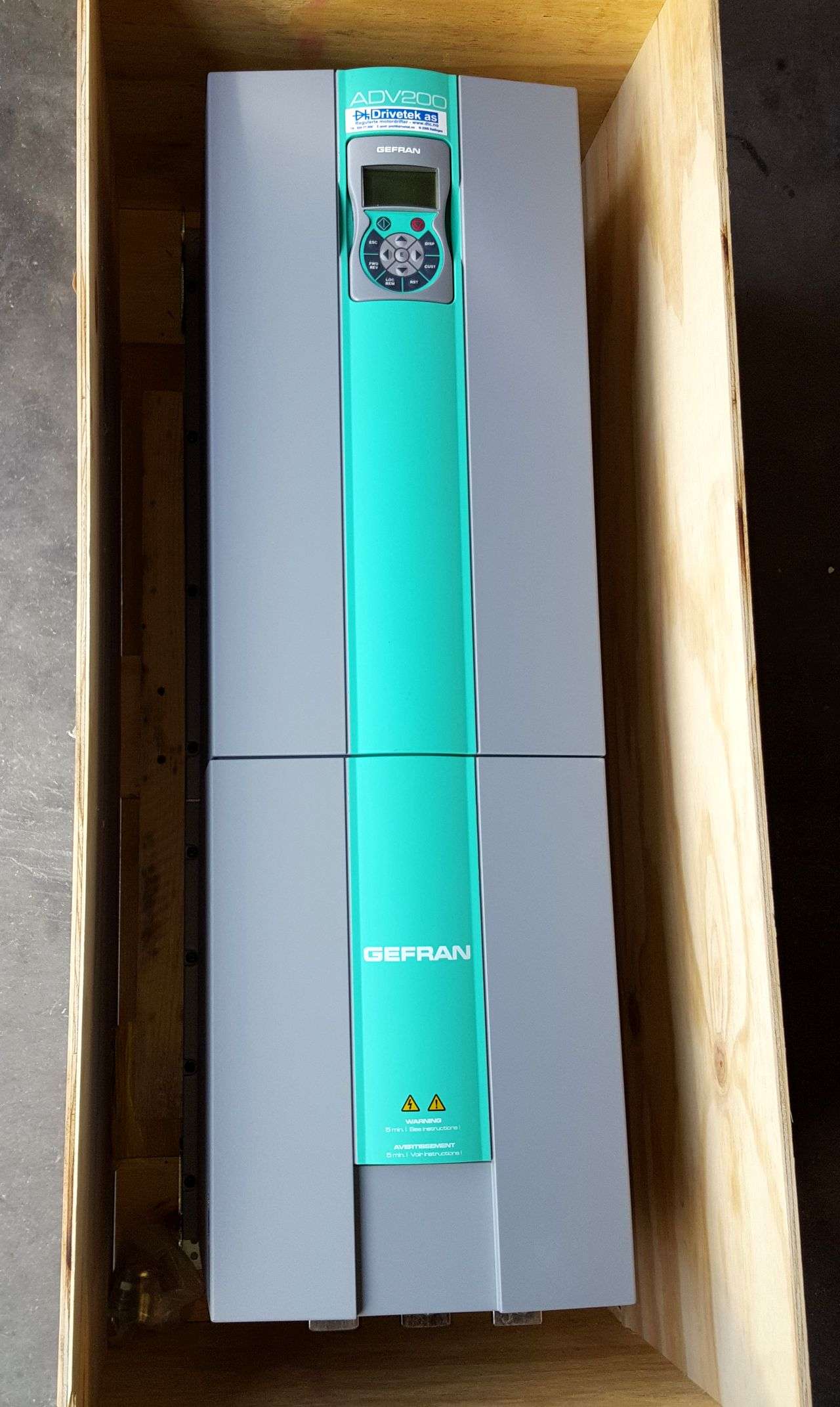 Gefran serie ADV200 er for krevende applikasjoner opp til 1500kW og 690V. Frekvensomformeren vi nå har levert er direkte væskekjølt og leverer 400kW konstant moment og 450kW kvadratisk moment (pumpedrift).